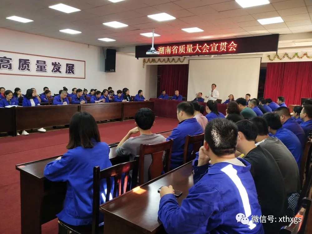 On the afternoon of November 18,all employees of[Xiangtan Hengxin]gathered in the conference room on the third floor to participate in the"publicity and implementation meeting of Hunan Provincial Quality Conference",which was chaired by Chairman xiaopingping.