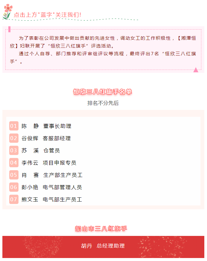 Xiangtan Hengxin Women's Federation launches the "March 8th Red Flag Bearer" selection activity