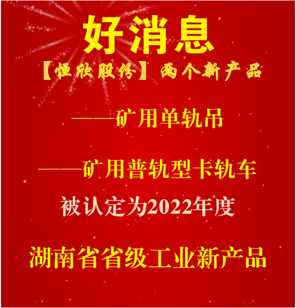 According to the official website of the Green Mining Industry Alliance of the Ministry of Natural Resources of China,the explosion-proof battery monorail crane produced by Hengxin Co.,Ltd.has won the Gold Award for Mining Equipment Quality.