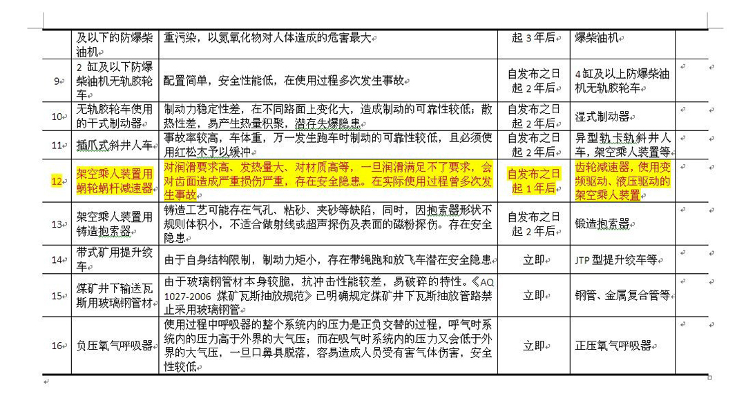 《禁止井工煤矿使用的设备及工艺目录(第四批)》建议
