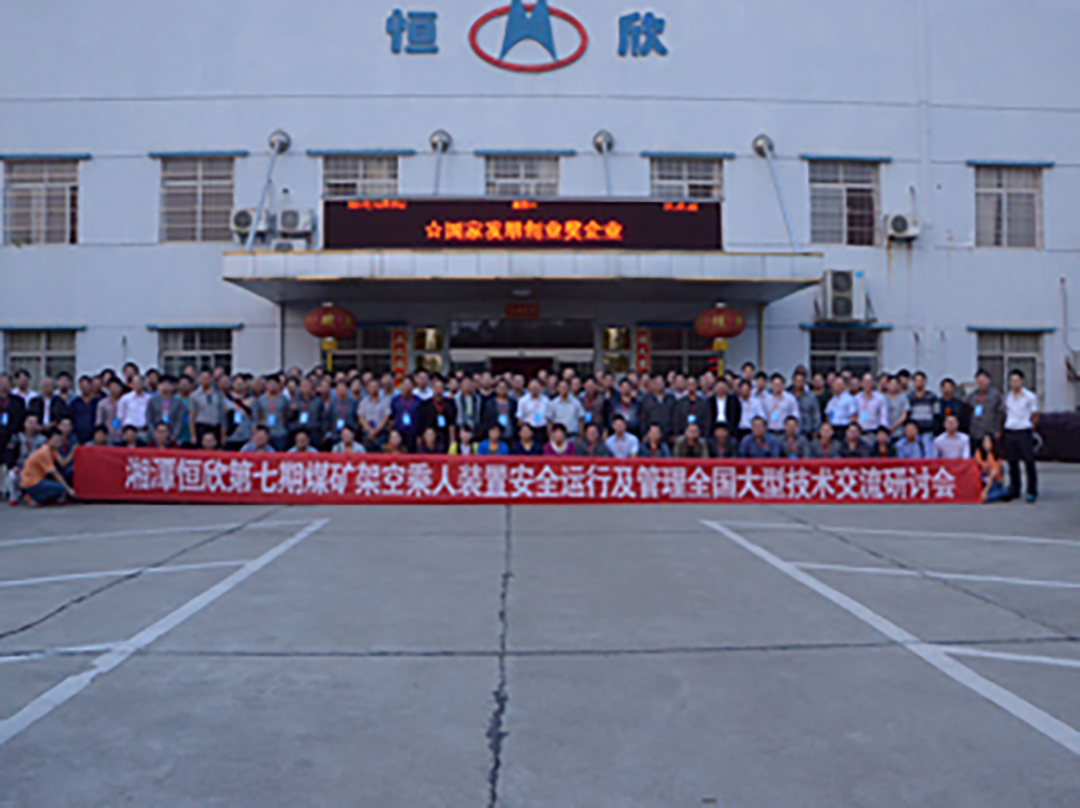 To continuously improve the safe operation and management of overhead passenger devices in coal mines,and ensure the safety of miners going up and down the mine.On October 21,2014,Xiangtan Hengxin successfully held the 7th National Large scale Technical Exchange Seminar on Safe Operation and Management of Coal Mine Aerial Passenger Devices.