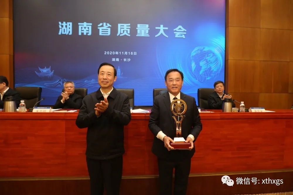 On the morning of November 16,the Hunan Provincial Quality Conference was held in Changsha.Seven units including[Xiangtan Hengxin]won the sixth Hunan provincial governor quality award.Xudazhe,deputy secretary of the provincial Party committee and governor of Hunan Province,presented the award to the winning enterprises.Xiaopingping,chairman of Xiangtan Hengxin,accepted the quality award trophy presented by the governor on behalf of the enterprises.