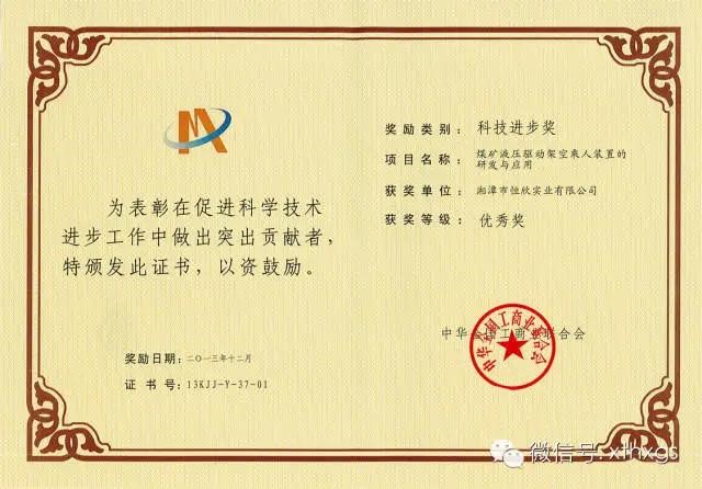 1.National honors:In 2014,Xiangtan Hengxin was awarded the title of"National Contract abiding and Reputable Publicity Enterprise"and was awarded the"Excellent Award of the National Federation of Industry and Commerce Science and Technology Progress Award".