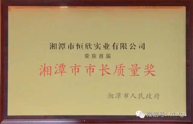 3.City level honors:In 2014,Xiangtan Hengxin was awarded the"First Mayor Quality Award of Xiangtan City"and the"Second Prize for Accelerating the Promotion of New Industrialization in the City".