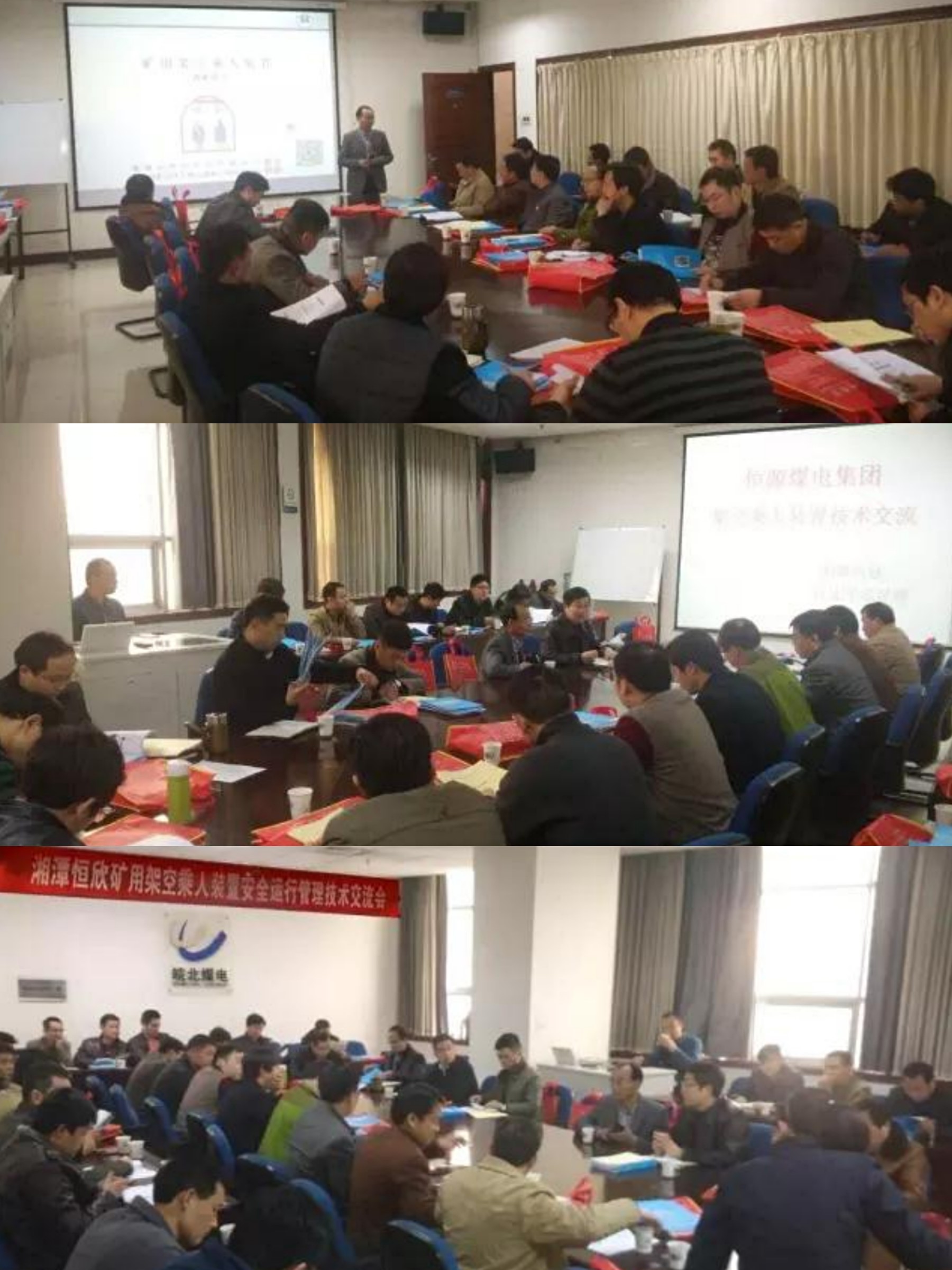 xiao12666@163.comOn March 4th, Xiangtan Hengxin was invited by Wanbei Coal and Power Group to hold a technical exchange meeting on overhead passenger devices at the headquarters of Wanbei Mining Group. More than 30 people, including Director Zhang of the Group's Machinery and Transportation Department, as well as heads (vice presidents) of various mines such as Renlou, Wugou, Baishan, and Wolonghu, as well as leaders and technical personnel of the machinery and transportation trunk line, participated in the technical exchange and training.